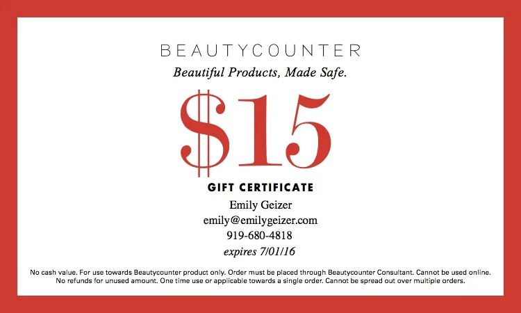 $15 Gift Certificate to Beautycounter (Beautycounter provides the safest, highest-performing products on the market)